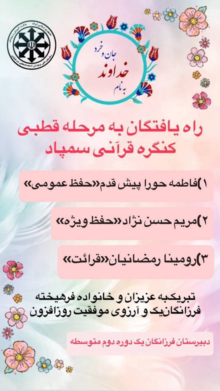 با نهایت افتخار و مسرت، موفقیت درخشان فرزندان عزیزمان در کنکور سراسری ۱۴۰۴ : آترینا فرحمند – رتبه ۱ تجربی این موفقیترا به دانشآموزان عزیز، خانوادههای گرامی، مدیریت محترم و معاونین و دبیران پرتلاش صمیمانه تبریک عرض میکنیم. به امید فتح قلههای بالاتر و درخشش روزافزون
